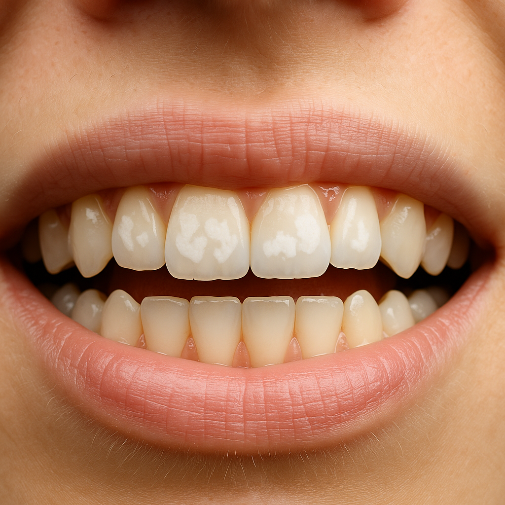 Bílé skvrny na zubech nejsou jen estetickou vadou. Jsou prvním viditelným signálem, že dochází k degradaci skloviny, tedy k demineralizaci – procesu, při kterém z povrchu zubu mizí minerály, zejména vápník a fosfát. Pokud se problém včas neřeší, může přejít do zubního kazu.